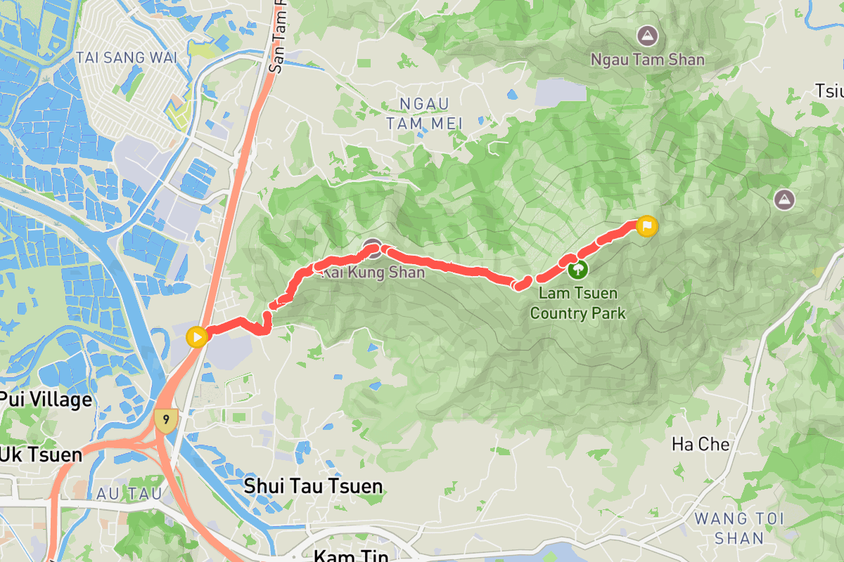 | 公里 | 配速 (/km) | 速度 (km/hr) | 海拔變化 | |
